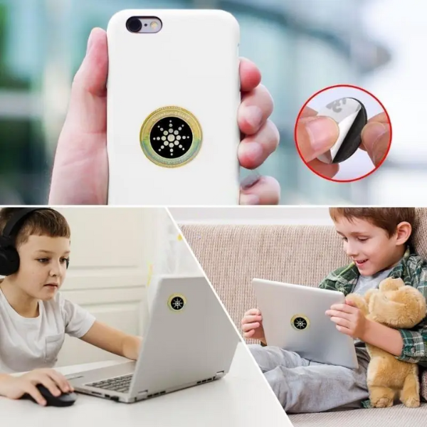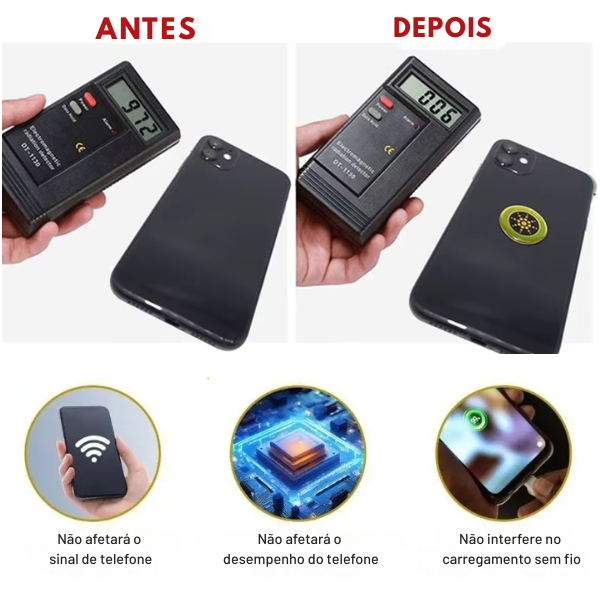 Eles são pequenos, discretos e fáceis de aplicar, mas carregam uma grande proposta: funcionar como um elemento de blindagem e harmonização, ajudando a mitigar parte da radiação eletromagnética emitida pelos dispositivos e trazendo mais tranquilidade para o uso diário.