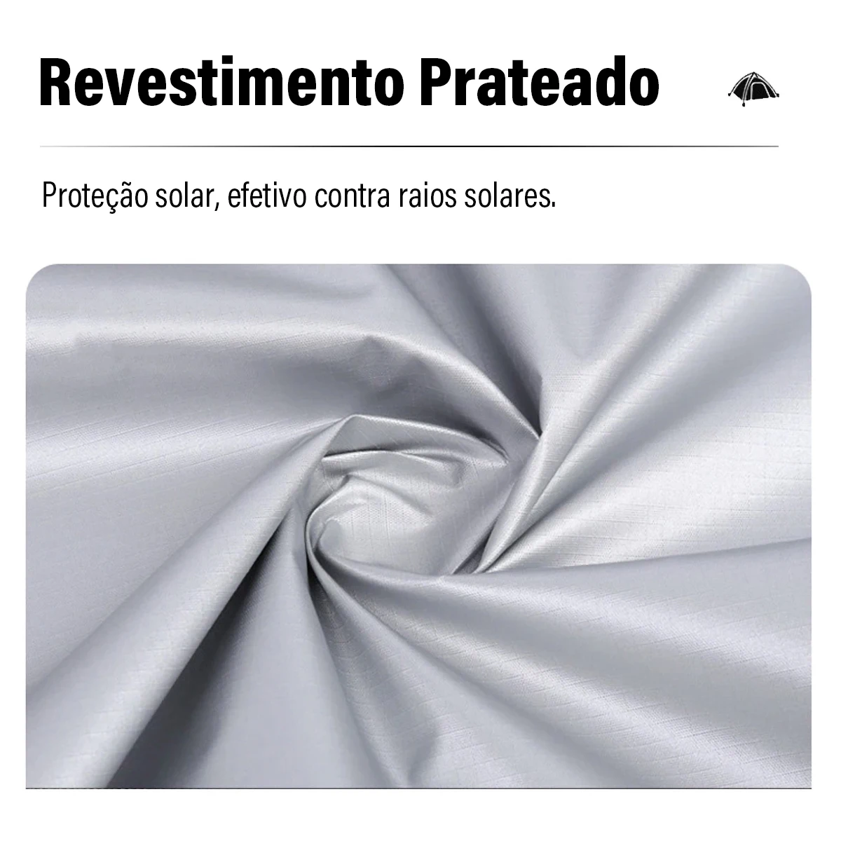 Isso significa que você não tem apenas uma barraca “de sol”, mas um abrigo mais completo, pronto para mudanças de tempo típicas de trilhas, montanhas, campos ou praias.