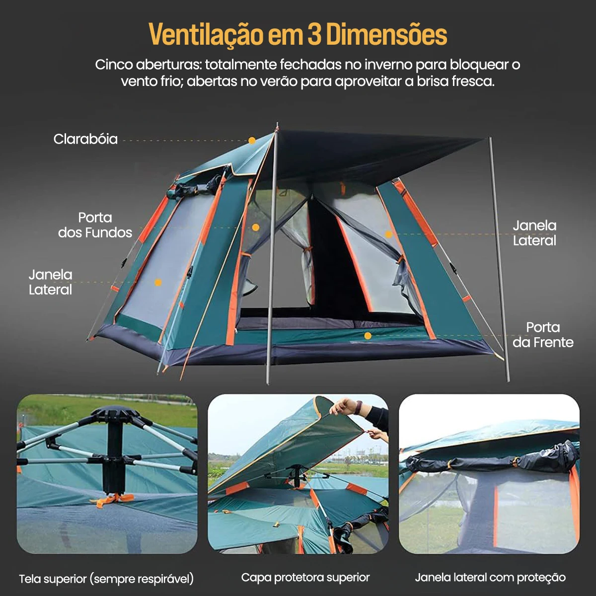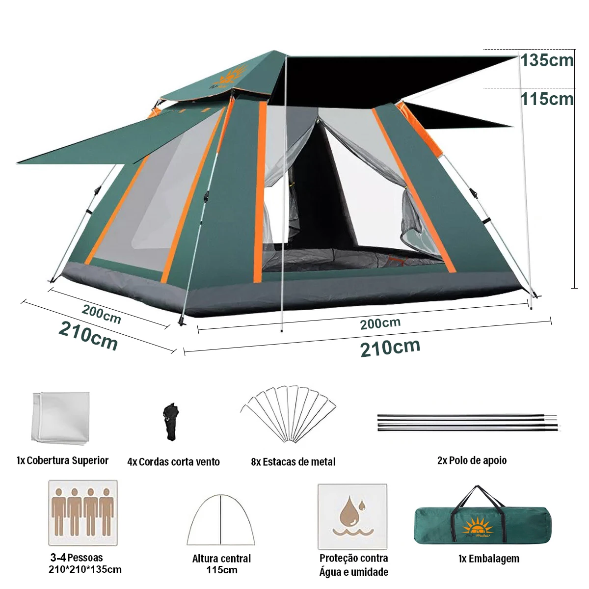 Imagine chegar no camping, na beira do rio ou no sítio e montar a barraca inteira em poucos segundos, sem brigar com varetas, sem perder tempo e sem passar raiva.