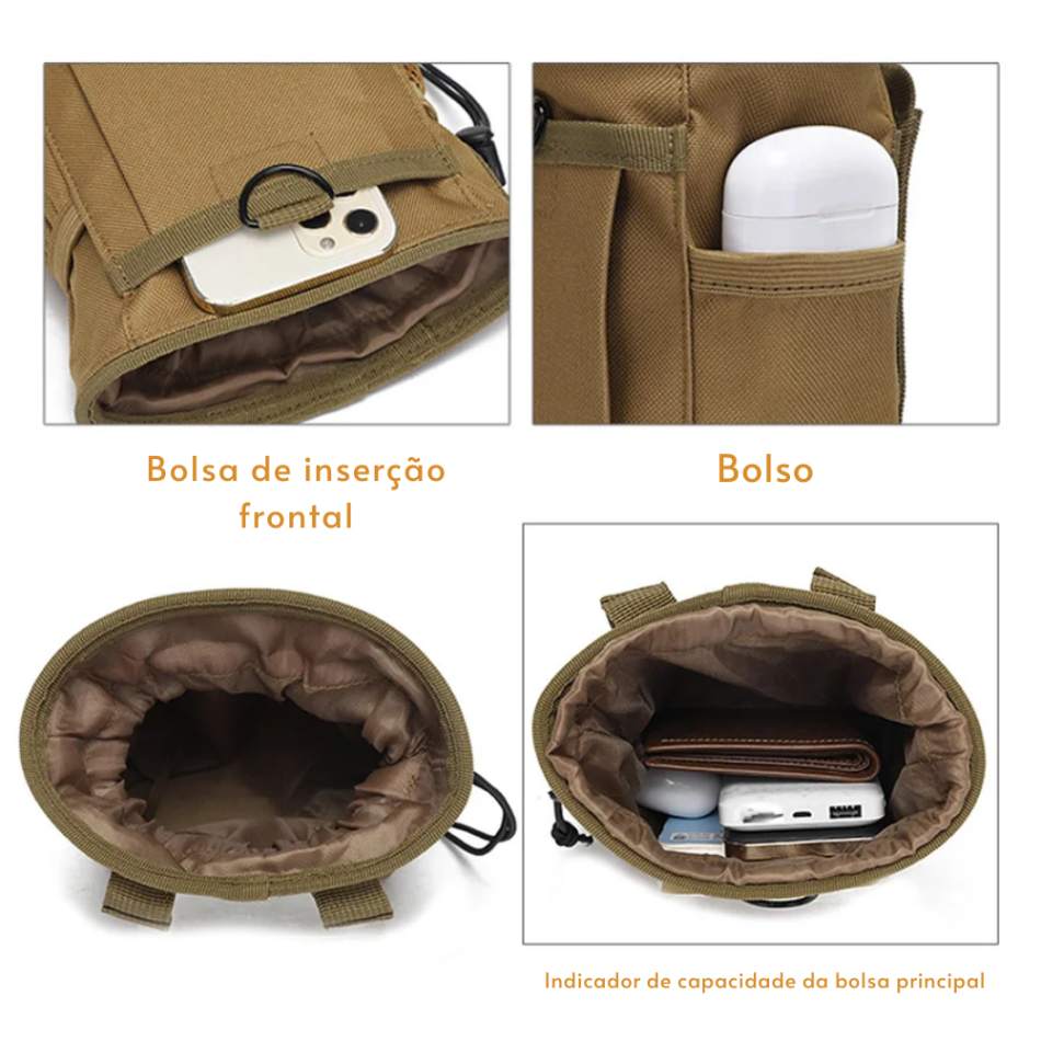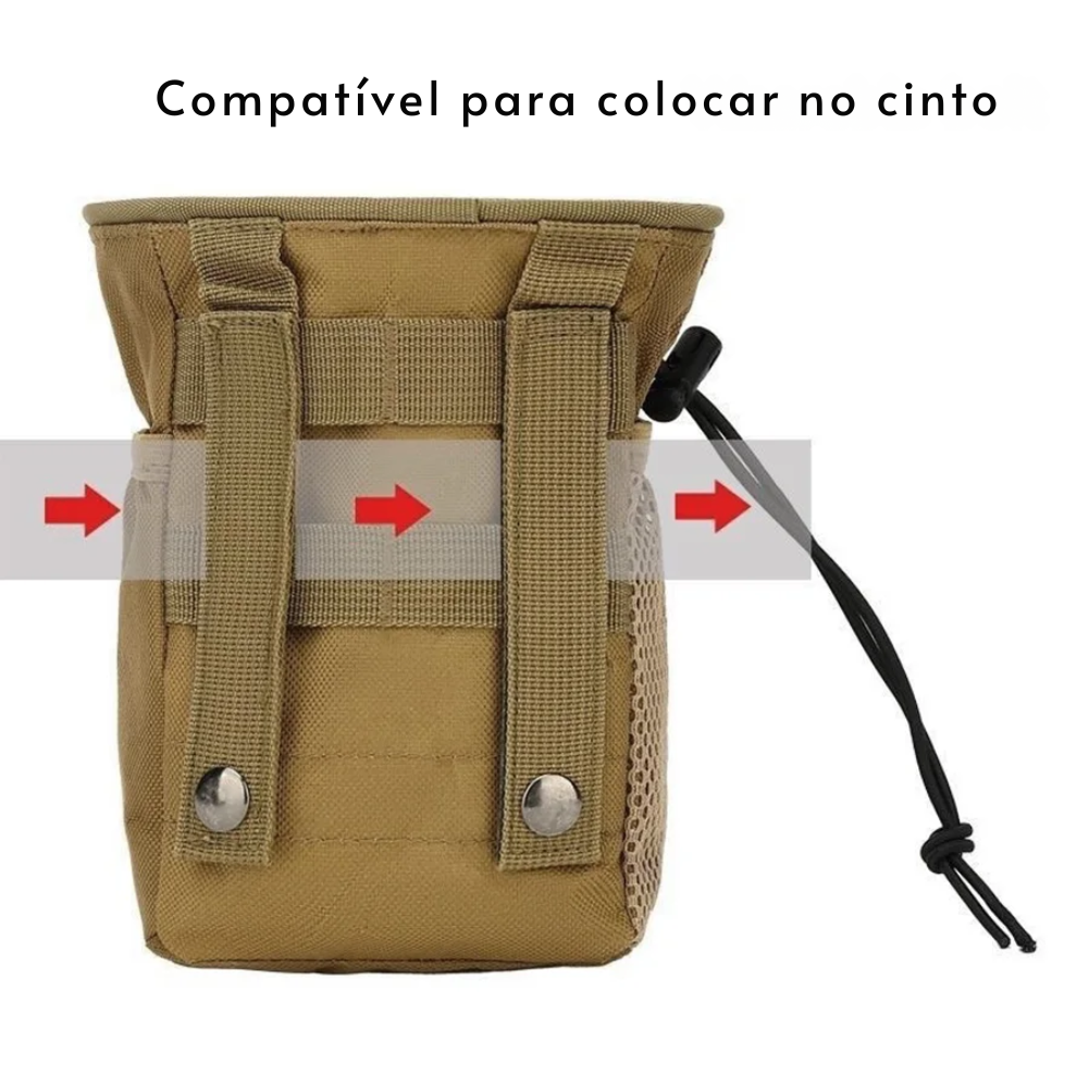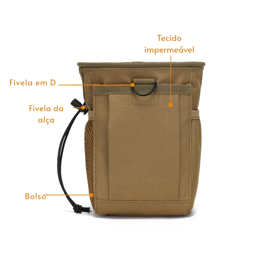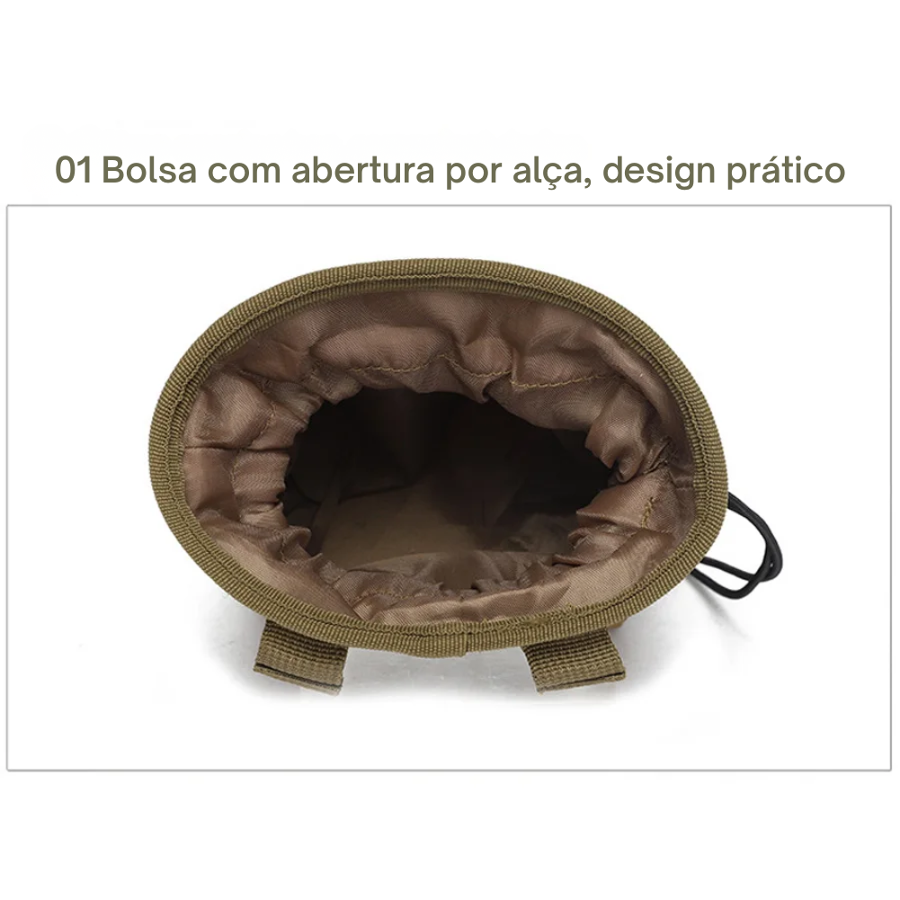 Com capacidade aproximada de 3 a 5 litros, ela é ideal para armazenar de forma rápida objetos que você precisa “jogar dentro e seguir em frente”. O conceito dump pouch (bolsa de despejo) é famoso por oferecer acesso imediato, sem zíperes complicados ou aberturas lentas. Isso faz diferença quando o ritmo é alto e cada segundo conta.