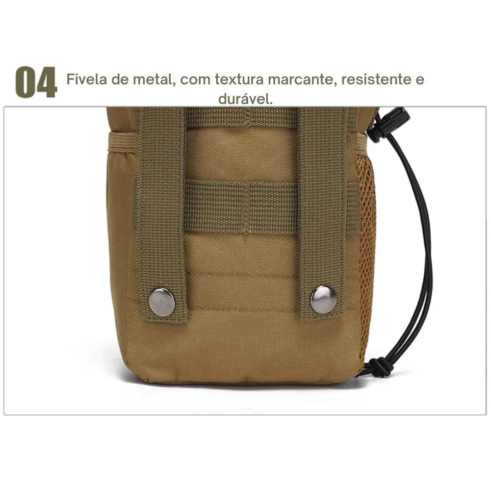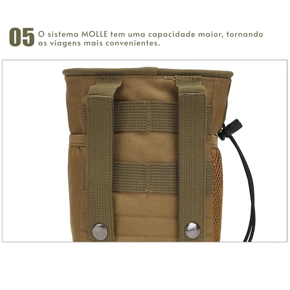 O sistema MOLLE permite fixação firme em coletes, mochilas táticas, cinturões e cintos de serviço, dando liberdade total para posicionar onde for mais ergonômico para você. Isso melhora a distribuição de peso e deixa sua movimentação muito mais limpa.