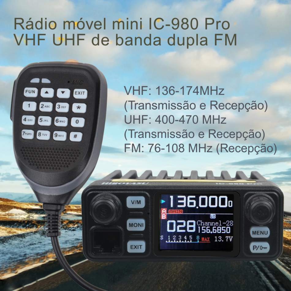 HIROYASU Walkie Talkie IC-980 Pro UHF VHF Dual Band Dual Watch 25W AI Redução de ruído FM Scrambler Vox Mini rádio móvel IC-980Pro com cabo de alimentação para isqueiro