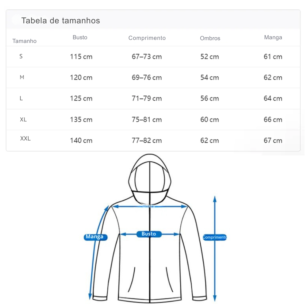 Para facilitar a escolha, você encontra esta jaqueta nos tamanhos: