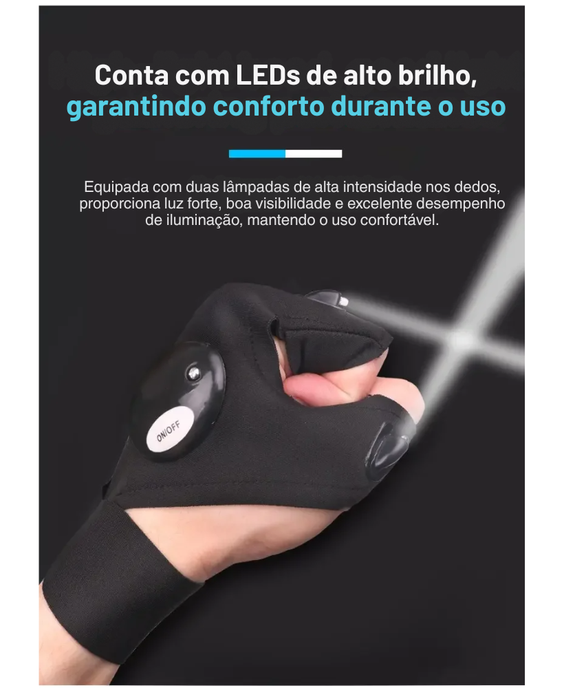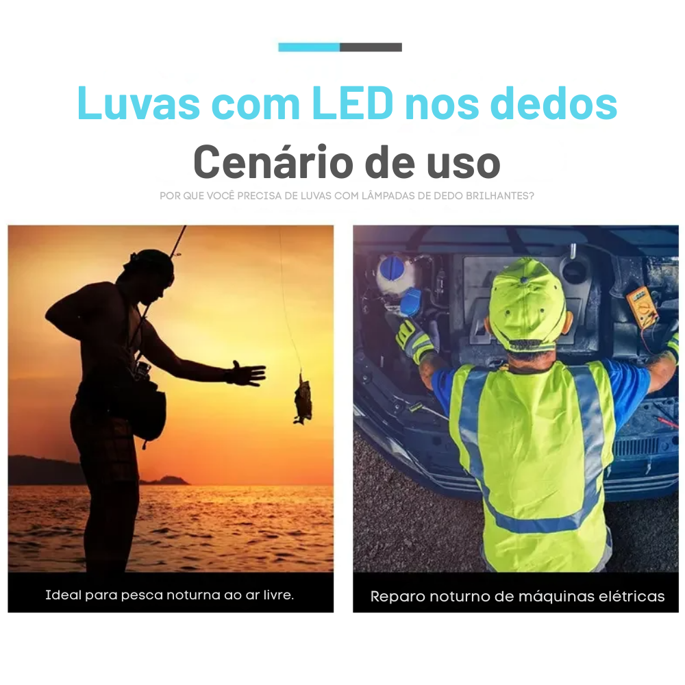 Ideal para pesca noturna, camping, caminhadas, trilhas, manutenção de equipamentos, uso em casa, no carro ou em situações de emergência, essa luva LED é o tipo de item que parece simples, mas faz uma enorme diferença quando você realmente precisa enxergar bem no escuro.