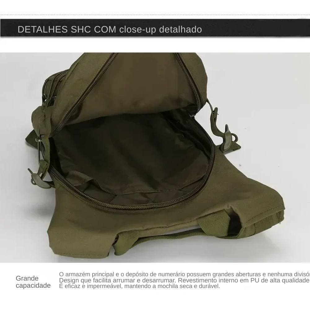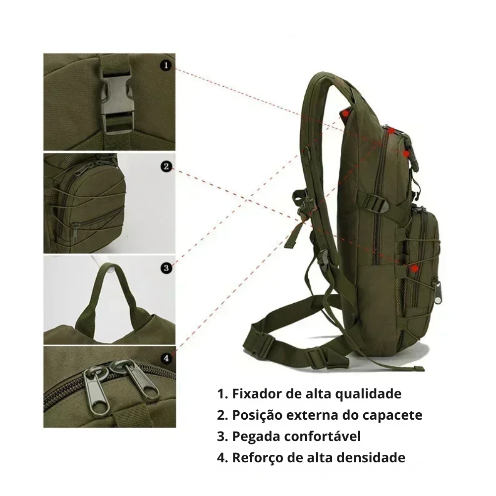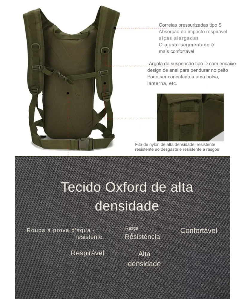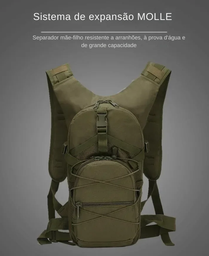 O grande diferencial está no sistema MOLLE, que permite personalizar a mochila com bolsos, patches e acessórios extras, ampliando a capacidade conforme sua necessidade. Isso transforma uma mochila compacta em um equipamento verdadeiramente modular, ideal para quem gosta de montar seu próprio kit de acordo com cada missão — seja uma trilha curta, um pedal longo ou a rotina urbana. 🔧🧰