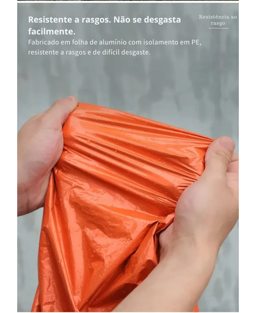 Funciona como capa de chuva e cobertor de sobrevivência;