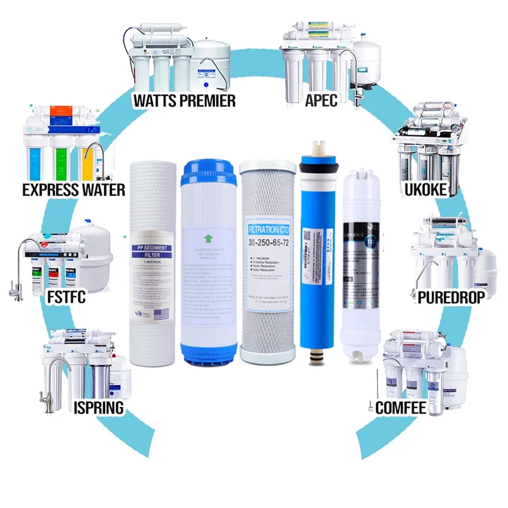 Indicado para sistemas domésticos de osmose reversa padrão, com estágios de pré-filtragem e pós-filtragem (ex.: sedimentos + carvão + carvão bloco + membrana RO + pós-carvão). Ideal para reposição periódica, mantendo a água com sabor mais leve e filtragem estável para beber, cozinhar, café, chá e uso diário.
