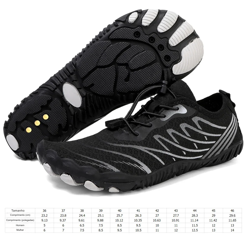 Sapatos de aterramento com base condutora de cobre, antiderrapante, respirável, aqua, de secagem rápida, leve, pés descalços, flexível para esportes aquáticos Características: 1. Aterramento aprimorado com cobre:Projetados com rebites de cobre, esses calçados aterrados transmitem efetivamente os íons negativos da Terra ao seu corpo.Um item obrigatório para entusiastas da aterramento que apreciam nossos sapatos aterrados condutores com aterramento aprimorados em cobre. 2. Parte superior respirável:Feitos de fibra de ar e materiais de impressão em gel, esses sapatos aquáticos respiráveis mantêm seus pés frescos e confortáveis, garantindo uma sensação refrescante ao longo do dia. 3. Fecho de bloqueio elástico:O fecho elástico com trava de tensão torna estes sapatos aquáticos unissex fáceis de colocar e tirar, com aperto ajustável para um ajuste perfeito. 4.Design de drenagem:Apresentando orifícios de drenagem na parte inferior, estes sapatos leves descalços expelem com eficiência o excesso de umidade, mantendo os pés secos e confortáveis tanto em ambientes aquáticos quanto terrestres. 5. leve e flexível:Com uma estrutura geral macia e torcivel, estes calçados oferecem uma sensação de liberdade e facilidade, permitindo-lhe seguir em frente sem restrições. Especificação: Origem: China continental Gênero: Unissex Material: Parte superior: Camada de ar + impressão offset, Sola: borracha Tamanho 36 37 38 39 40 41 42 43 44 46 Comprimento interno (cm) 23,2 23.8 24.4 25.1 25.7 26.3 27 27.7 28.3 29 29.6 Comprimento interno (polegadas) 9,13 9.37 9.61 9.88 10.12 10.35 10.63 10.91 11.14 11.42 11.65 Tamanho dos EUA (Masculino) 5 6 6,5 7,5 8,5 9,5 10 11,5 12 13 Tamanho dos EUA (feminino) 6 7 7,5 8,5 9,5 10,5 11 12,5 13 14 Nota: