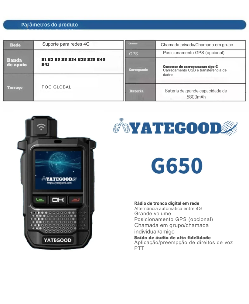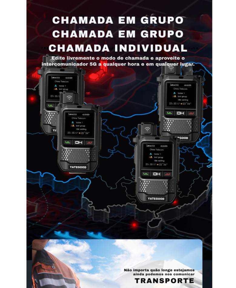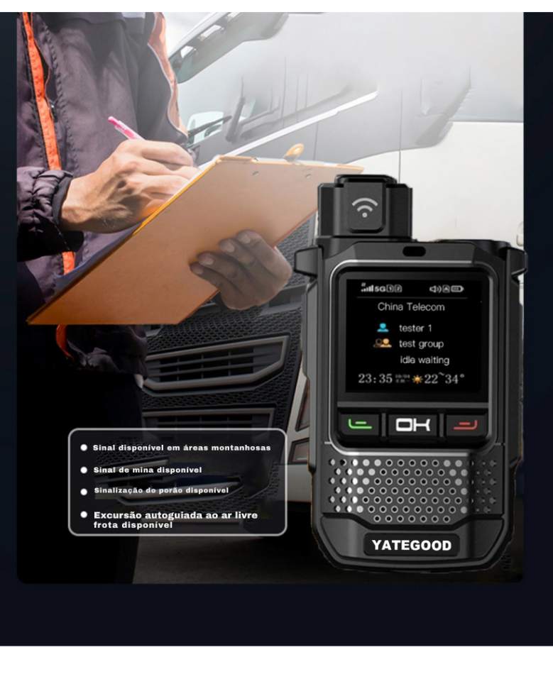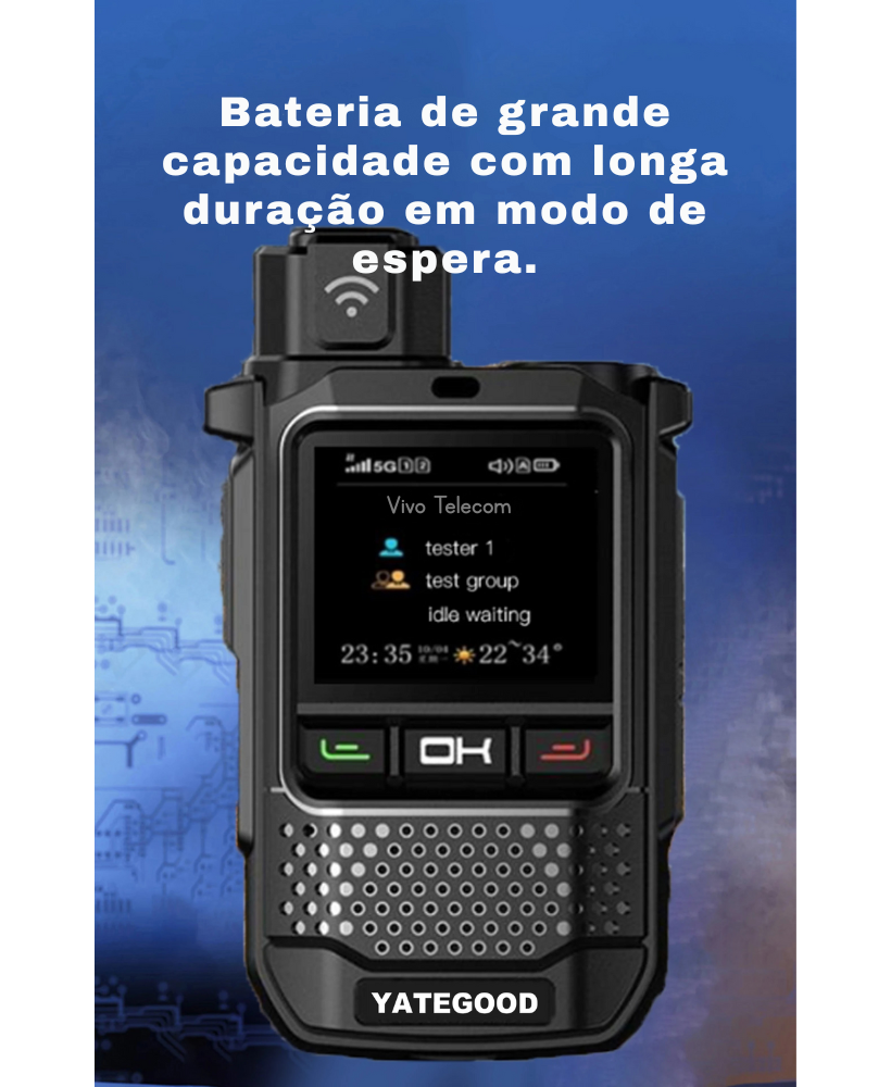 O YATEGOOD G650 Walkie Talkie “Sem limite de distância” – Intercom Portátil de Longa Autonomia é a evolução moderna do rádio tradicional. Em vez de depender apenas de alcance curto por frequência, esse modelo trabalha no conceito de Push-to-Talk sobre rede móvel (quando usado com SIM), permitindo comunicação em longa distância onde houver cobertura de dados. Ou seja: na prática, o “sem limite de distância” significa que você pode falar com sua equipe mesmo em cidades diferentes, estados diferentes ou em deslocamentos longos — desde que ambos estejam conectados à rede. 📡🌍