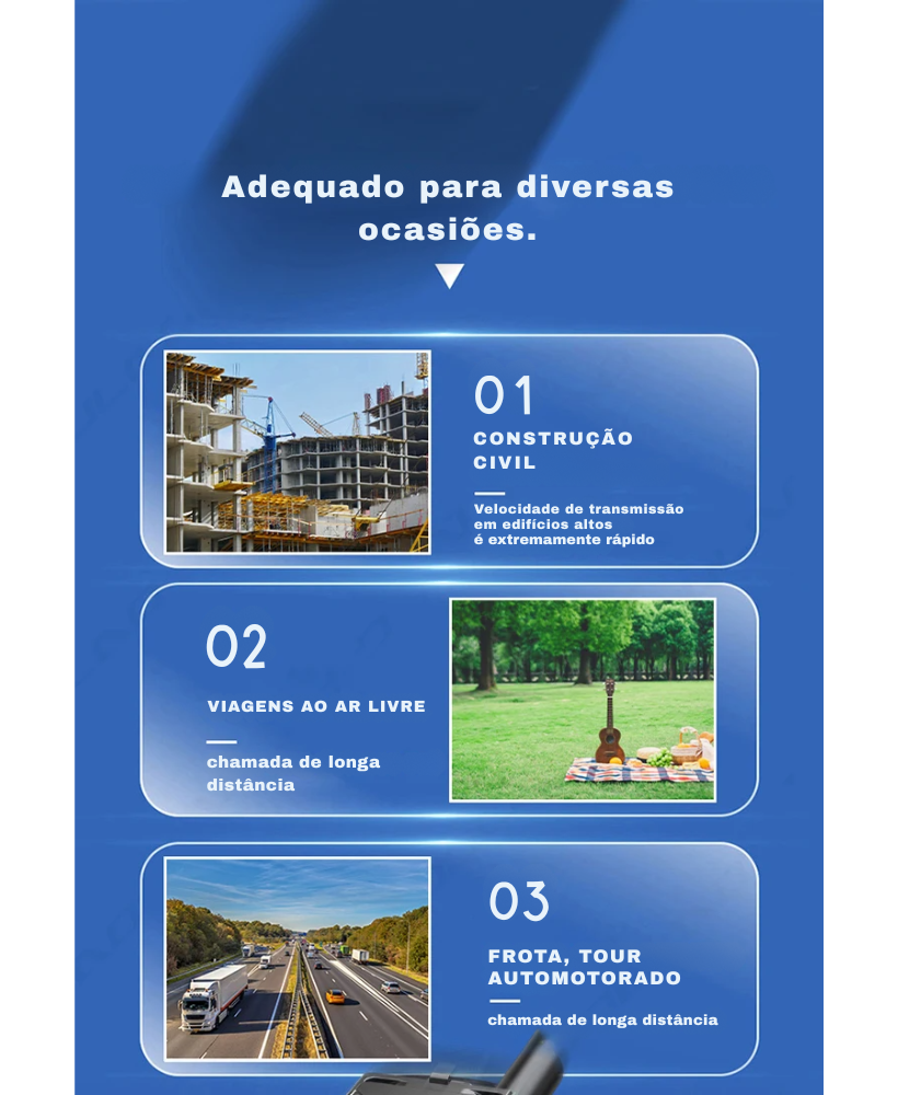 Ele foi feito para quem precisa de comunicação rápida, simples e profissional, com o estilo “apertou e falou”, sem a lentidão de ligações e sem depender de Wi-Fi. É perfeito para: